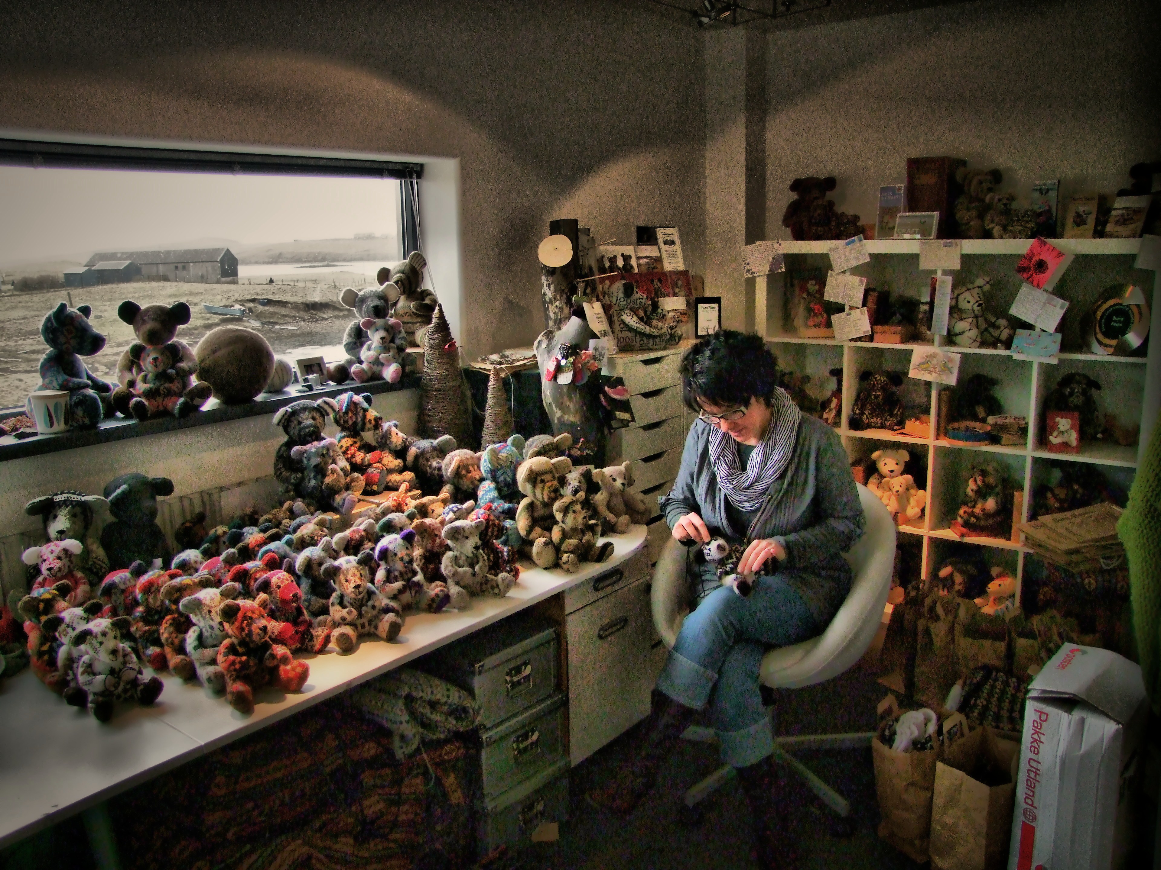 Wendy Inkster, Meet Shetland Textiles participant, working in her studio.