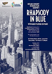 A highlight for many will be the first performance in Shetland of Gershwin’s Rhapsody in Blue, featuring Harris Playfair on piano. Orchestra secretary, Carolyn Johnston, said: “Harris Playfair is well-known to Shetland audiences and we are delighted to be able to bring him up this year as a result of funding from Scotland’s Islands and Shetland Arts. Harris slips easily between genres and embodies what this Orchestra is all about – musicians from classical, jazz and traditional music backgrounds coming together to play great music.”