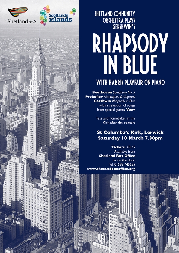 Bryan Peterson, Shetland Arts’ Music Development Officer, said, “The Orchestra and Veev have put together an excellent programme, and Rhapsody In Blue is a personal favourite of mine. Inviting Harris Playfair as guest pianist will make for an extraordinary evening of music.“