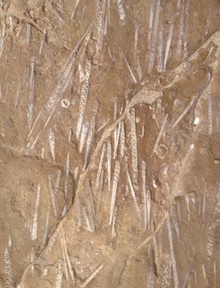 The Shell Fossil collection is my interpretation of a large flat rock I discovered on holiday one year. It had ancient sea creature fossils imbedded in it. They were some kind of conical shaped mollusc, but the way the rock surface had been worn away made them look flat. The knitwear pattern is the result of computer manipulation of a photograph I took at the time.
