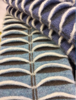 Everyone has seen the ripples left in the sand when the tide recedes. I saw this common phenomenon as a design challenge. Building surface texture into knitwear is of course a longstanding skill but modern techniques have enabled the enhancement of our capabilities.