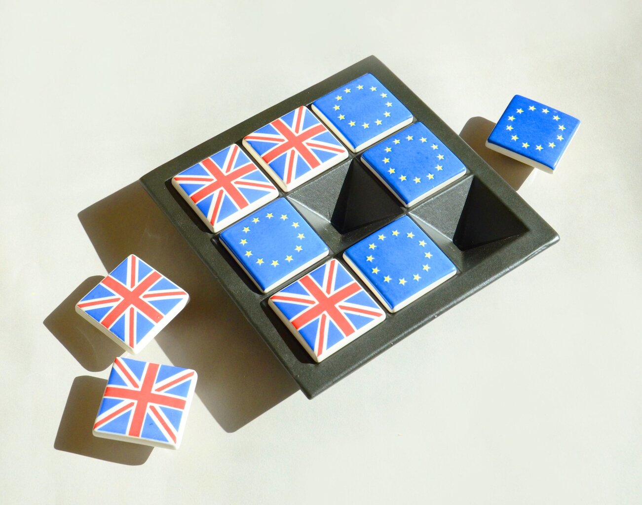 ... is a difficult game to win. The shapes of the flags resemble 'X's and 'O's and the opportunity to use this was too good to miss. It's a variation on a piece I've been making occasionally over the last few years and it seemed highly appropriate for present circumstances.
