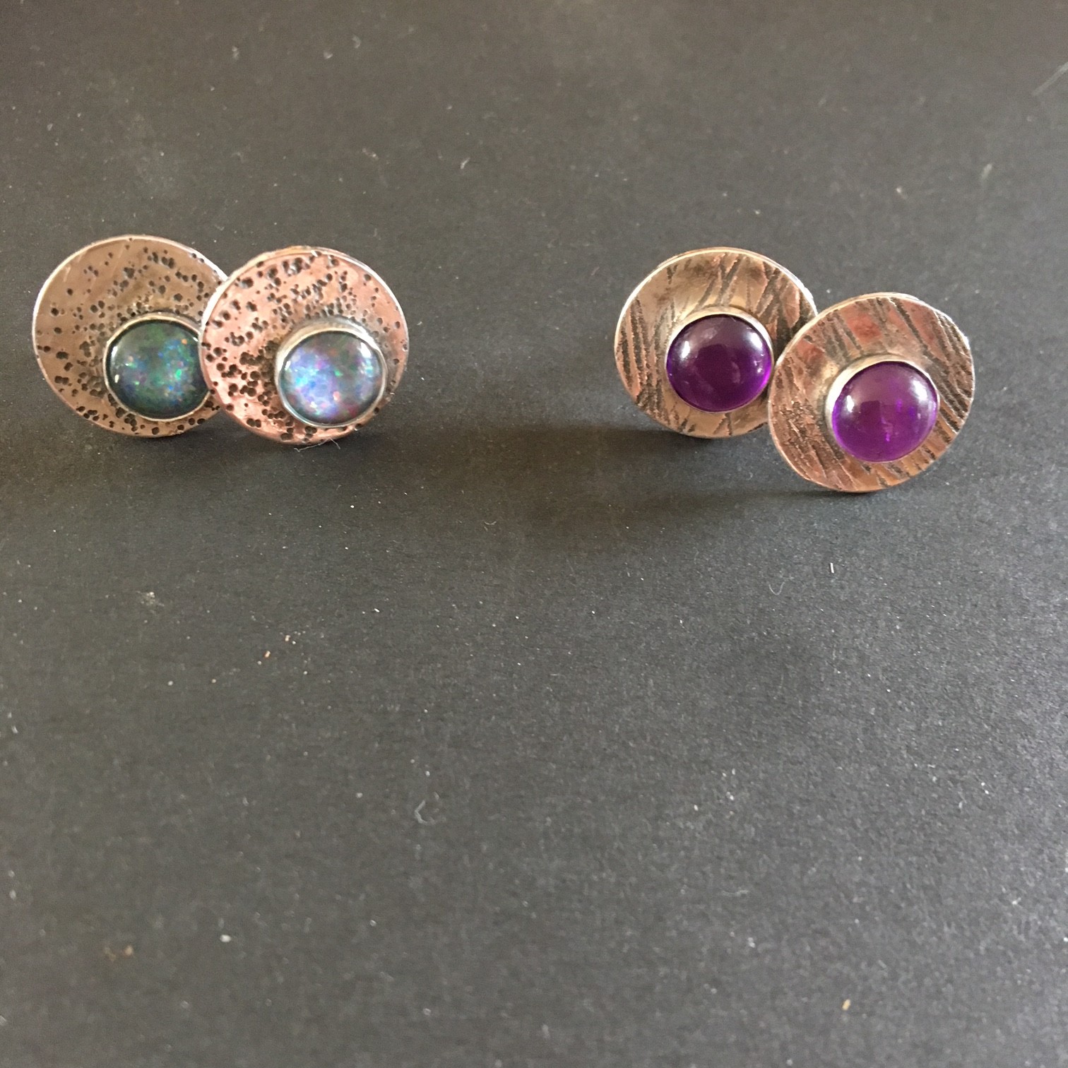The purple in the collection is from road side scabious and heather covered hills shown by amethysts. The sparkly sea is reflected in the opals. Each pair of earrings is sterling silver and uses genuine fair trade gemstones.