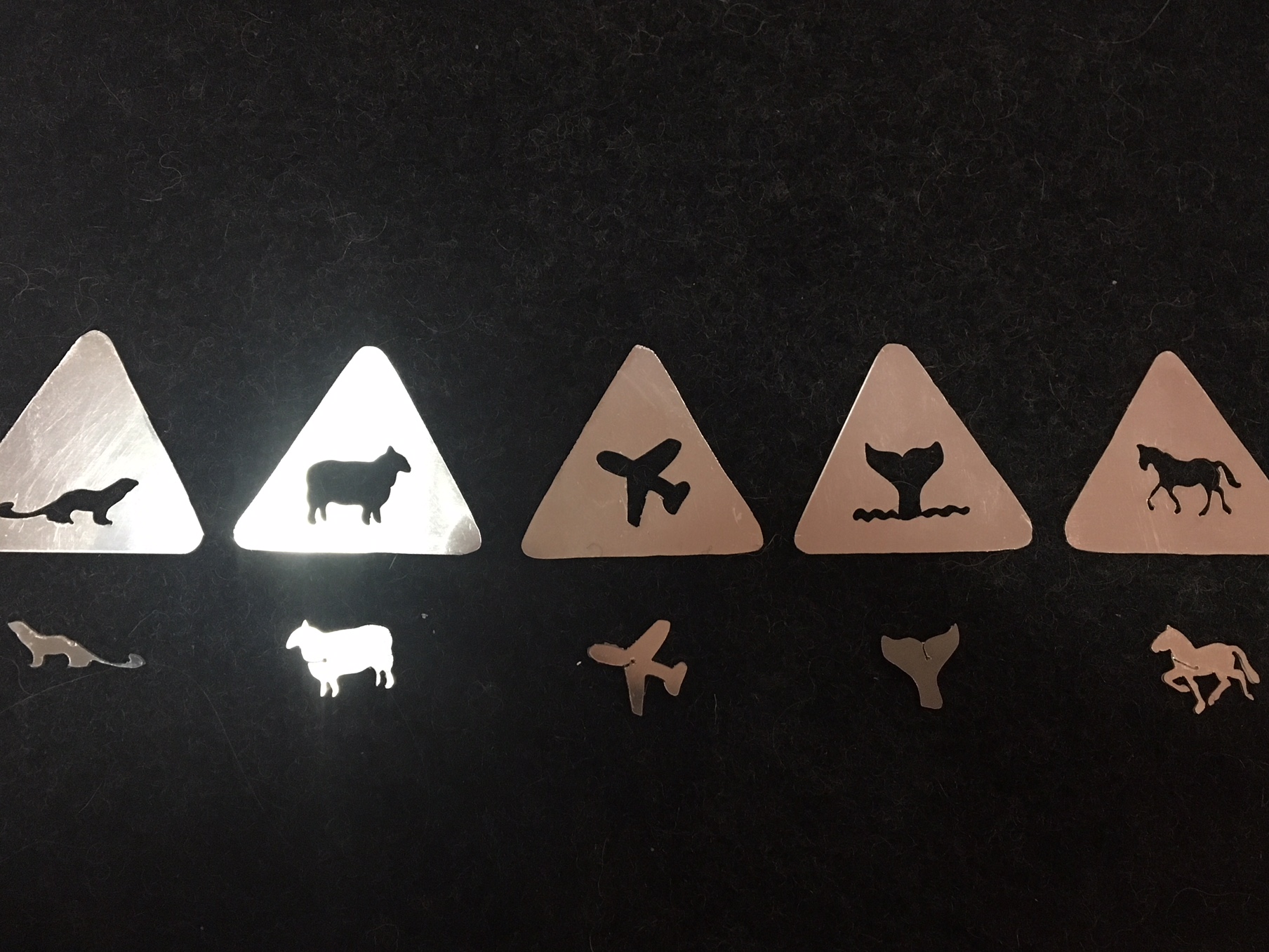 I put in quite a lot of miles on the roads in Shetland every year and so I was amused that those journeys inspired a new collection. The Caution! Collection shows signs I see on the road every day and that make me smile. See if you can spot them as you go around Shetland.