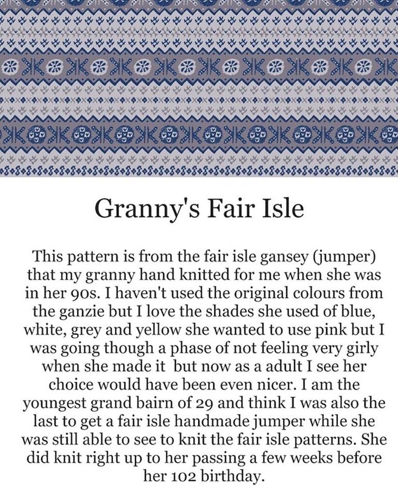 When I studied at Galashiels for two years while doing my honours degree and I was very homesick, so I started to incorporate my home in my work drawing images relating to Shetland and my memories of home. I was doing a greeting card range at uni for the designer Mark Eley from Eley Kishimoto for that project, that was when I first started drawing Fair Isle patterns and started to develop my current style of drawing, including the Shetland Starling greeting card range.