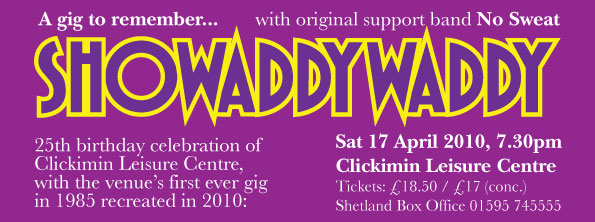 Have a listen to the mp3 version of the Showaddywaddy radio advert for the Showaddywaddy gig at the Clickimin Centre this Saturday, 17th April.