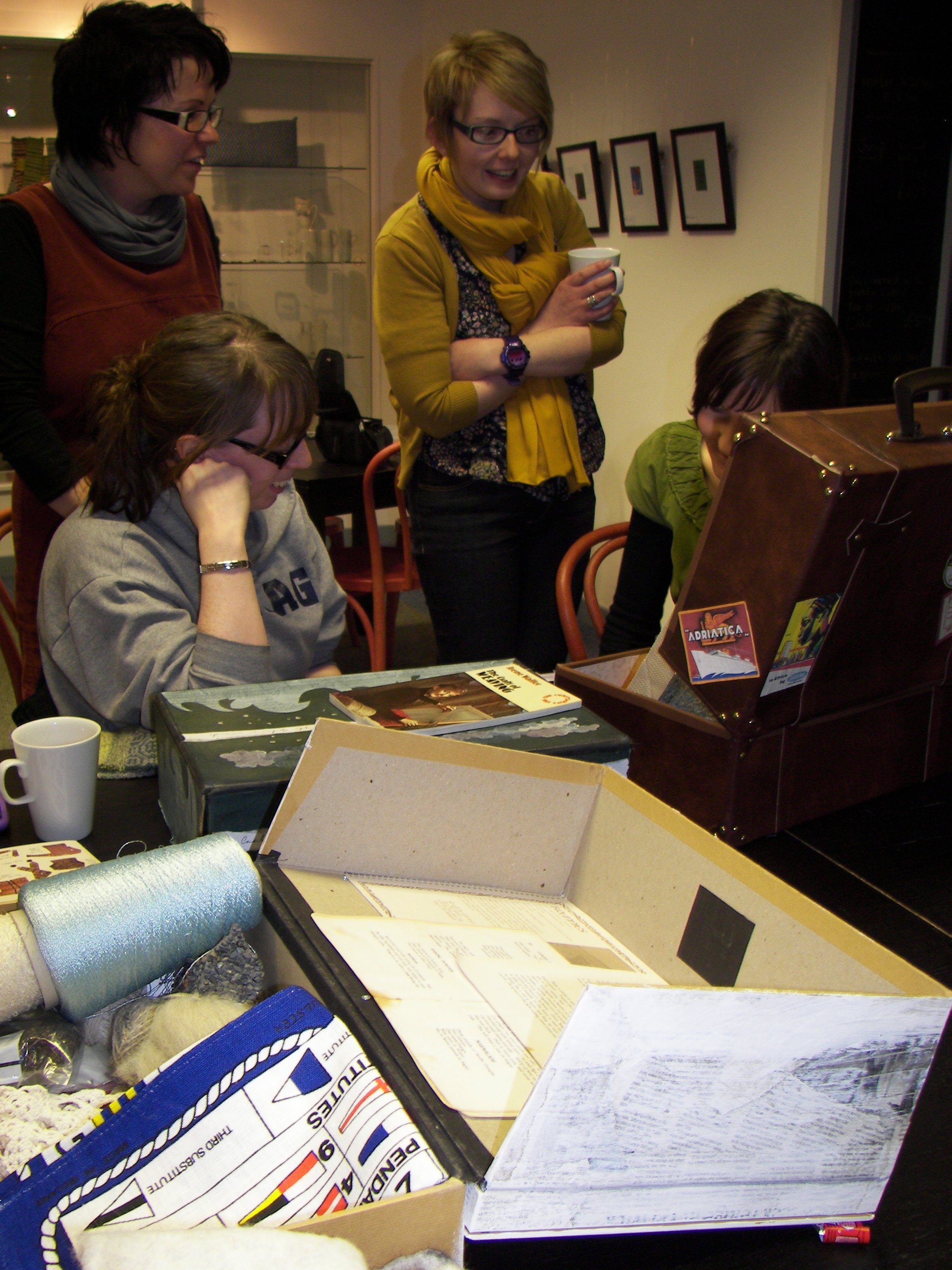 On a dark night in February the six makers – Jo Jack, Wendy Inkster, Suzanne Shearer, Andrea Williamson, Donna Smith and Emma Blain met at Bonhoga to swap their boxes with each other and start the second phase of the project. Each, with their new box of delights, set about interpreting the contents and using them to inspire new pieces of work for display.It is these boxes, sketchbooks and finished works that make up the unusual and inspiring exhibition that runs until 4th November. To coincide with the opening of the exhibition two members of the group will be giving an informal talk in the gallery on 22nd September at 11.30am, while from 11-1pm in the café on the same day, two more members of the group will be running an informal drop-in workshop for bairns to come along and get creative (no booking needed for either, just turn up!).