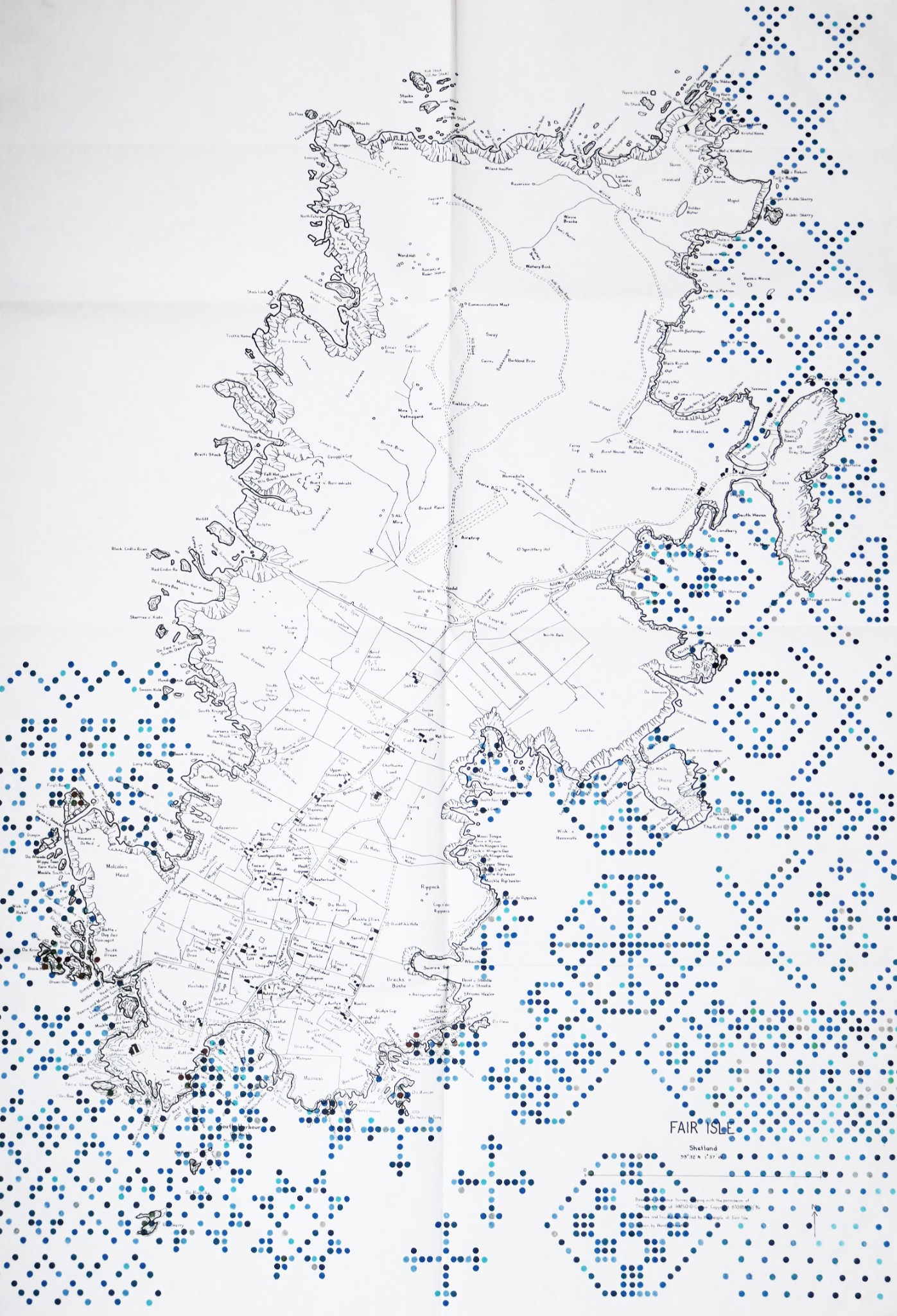 The artwork I created explores the connection between Fair Isle (the island) and Fair Isle (the knitting technique). It was to be something as generous as the island, as powerful as the weather, something heavy and impressive. It was also going to be a real technical challenge to myself and my knitting skills.