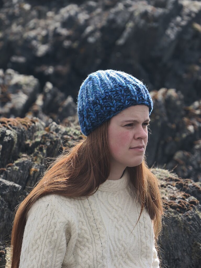 I am really pleased with how this project has helped my practice develop. After finishing the knitting of 27 shades of Shetland blues it felt strange - it had taken pretty much all my time for a whole month, and suddenly it was done. I don’t usually knit by hand and have never actually knitted any Fair Isle by hand before! Yet I became so attached to the method and design potential that I immediately started making smaller pieces that could be sold to raise funds to purchase wool for more projects like this one. This processes of creation, making something new, something with a different way of using the wool and the pattern and then bringing it back to a collection of knitting for sale is a processes I would like to explore again.