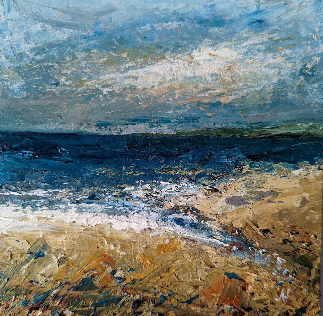Last year Julie Willmore applied for an Emerging Artist Bursary of £500, Julie has worked with many mediums and is currently working with acrylics layered with saw dust, sand and other materials to create beautiful paintings with a 3D depth.