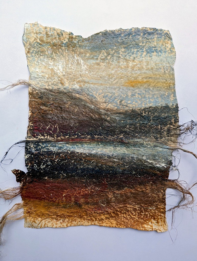 Julie's paintings are currently being exhibited at the Shetland Gallery at Sellafirth, Yell – which includes her handmade paper textural examples. With the support of the bursary Julie feels she will be competent exhibiting in Shetland and on the mainland to a very high standard.
