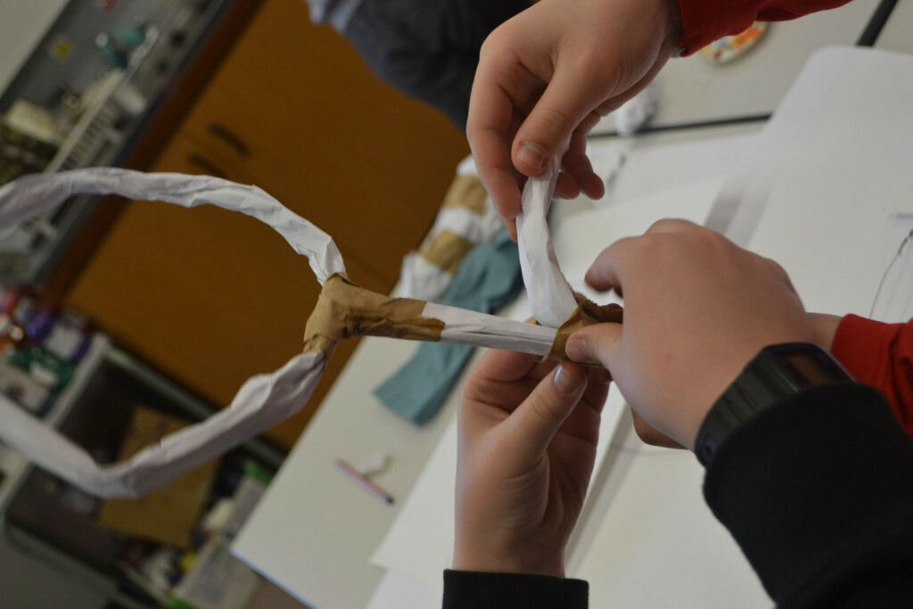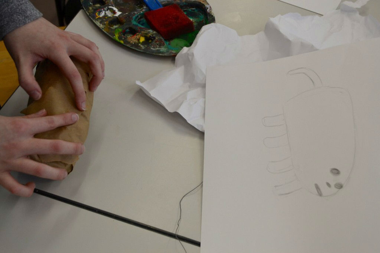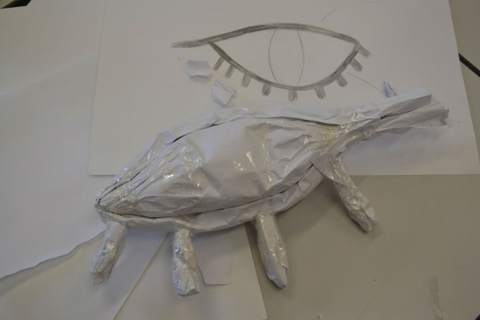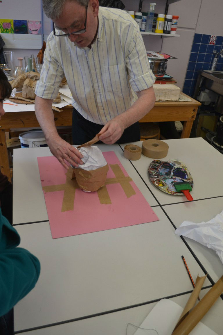 We are working with the enthusiastic Mr Stevenson in Art who had lots of ideas of how to help the young artists’ ideas materialise. I introduced the classes to Folk Art (See images from the British Folk Art exhibition at Tate Britain) and we discussed ways to make these images pop out the canvas and into the real world (and the Art World). This is much like what the S1 students are doing in Aith – but Whalsay are using a totally different material and working to a slightly smaller scale. Whalsay are using paper, wire, gumtape, and then paper-mache. Today the students played with the – new to them – materials, and some made little models before they moved on the final works, others went straight in and started building toward the final pieces. I can wait to see their ideas and sculptures solidify.