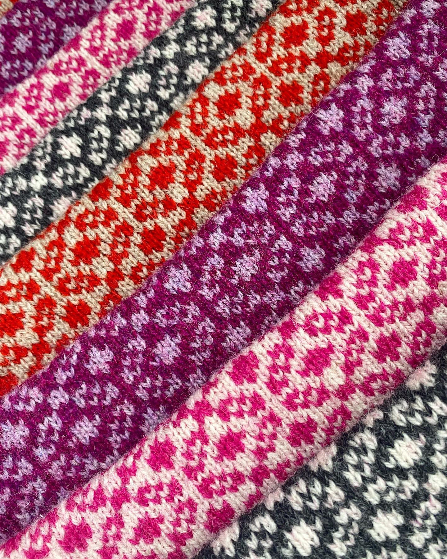 Deborah is a textile artist with a background as a scientist. She incorporates scientific elements into her weaving designs, especially focusing on the light and colour that are so spectacular throughout the year in Shetland. The regular and repeated patterns recognised in science are a constant presence across the Shetland landscape in the displays of wildflowers and colour combinations. Deborah weaves her pieces in her studio in Burra and she enjoys working with local wool producers to highlight the beauty of the fleece produced in Shetland.