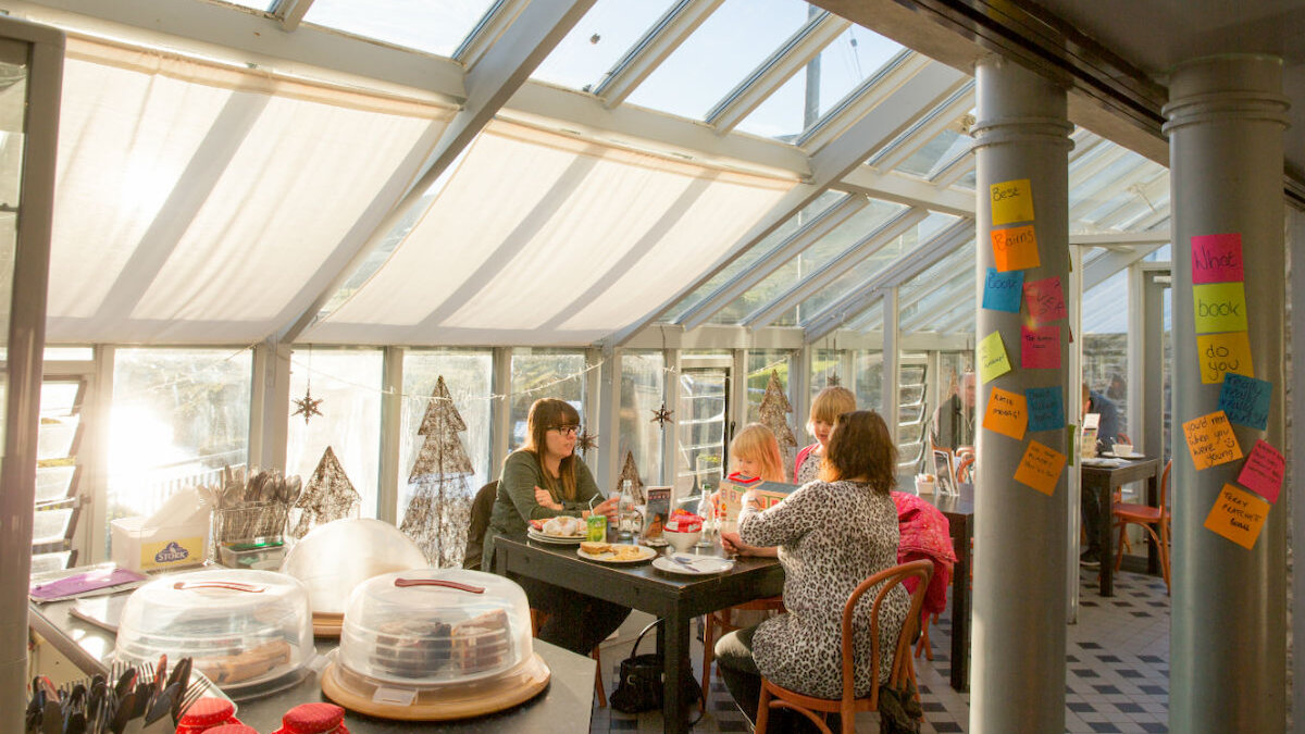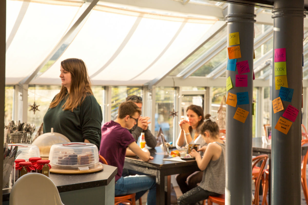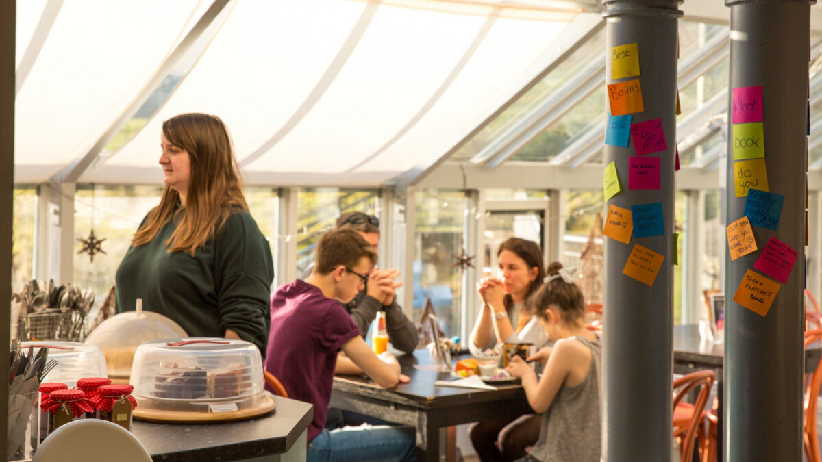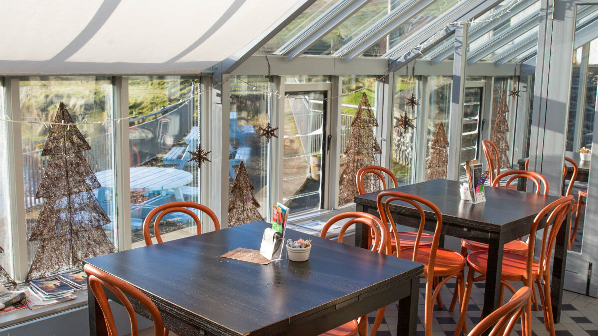 On the lower ground floor of the mill, incorporating a south-facing conservatory overlooking the Weisdale burn, the cafe is a popular spot for coffee and homemade scones. The lunch menu features locally-sourced products and specialities, all prepared on the premises, and there is a wide selection of teas, coffees and soft drinks. Vegetarian, dairy-free and gluten-free options are always available.